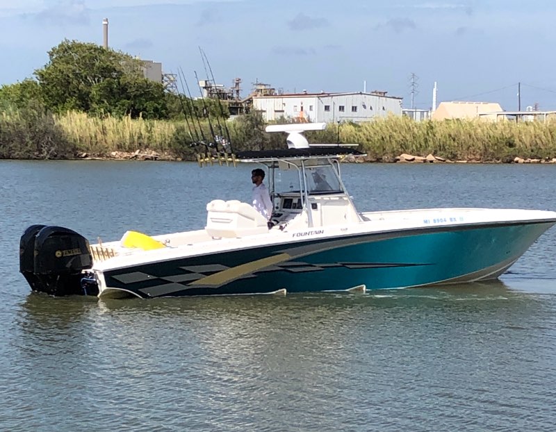 Our “girl” and our work horse. A 2003 27′ ProKat, “Revelry” got us started in this journey. Originally purchased as a toy, she was put to work after Captain Rodney was laid off from the oilfield. We use Revelry for nearshore trips. Although it measures under 30′, this boat is very spacious and has more room to fish than most center consoles. Powered by two 200 HP Honda engines, the boat will get you to the fishing spots fast, and its catamaran hulls make it very seaworthy. With new Garmin electronics in 2020, new engines in 2021, T-top for shade, a multimedia system on board, and a camp potty in the cuddy, it will provide an enjoyable base for a day out on the water. It is fully rigged with outriggers to help you bring in the big ones.